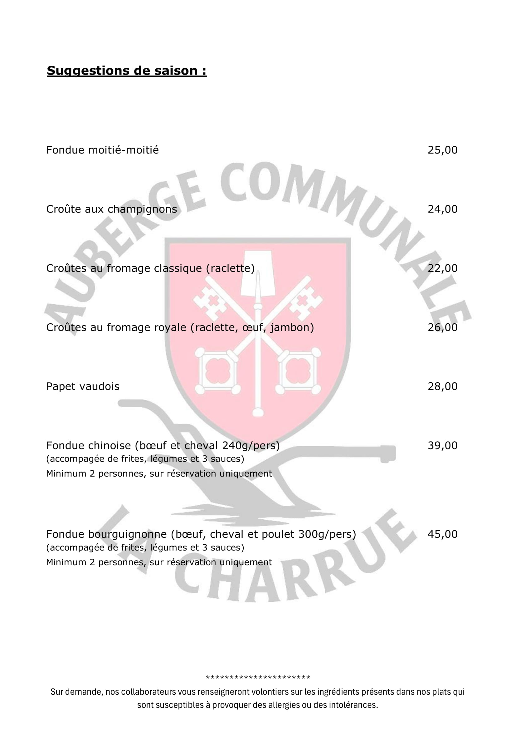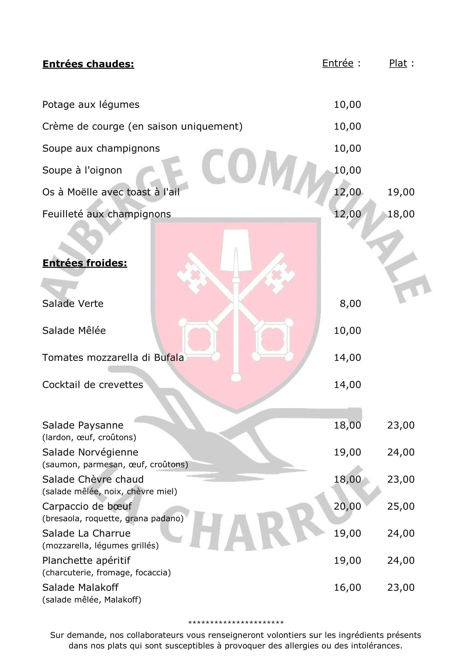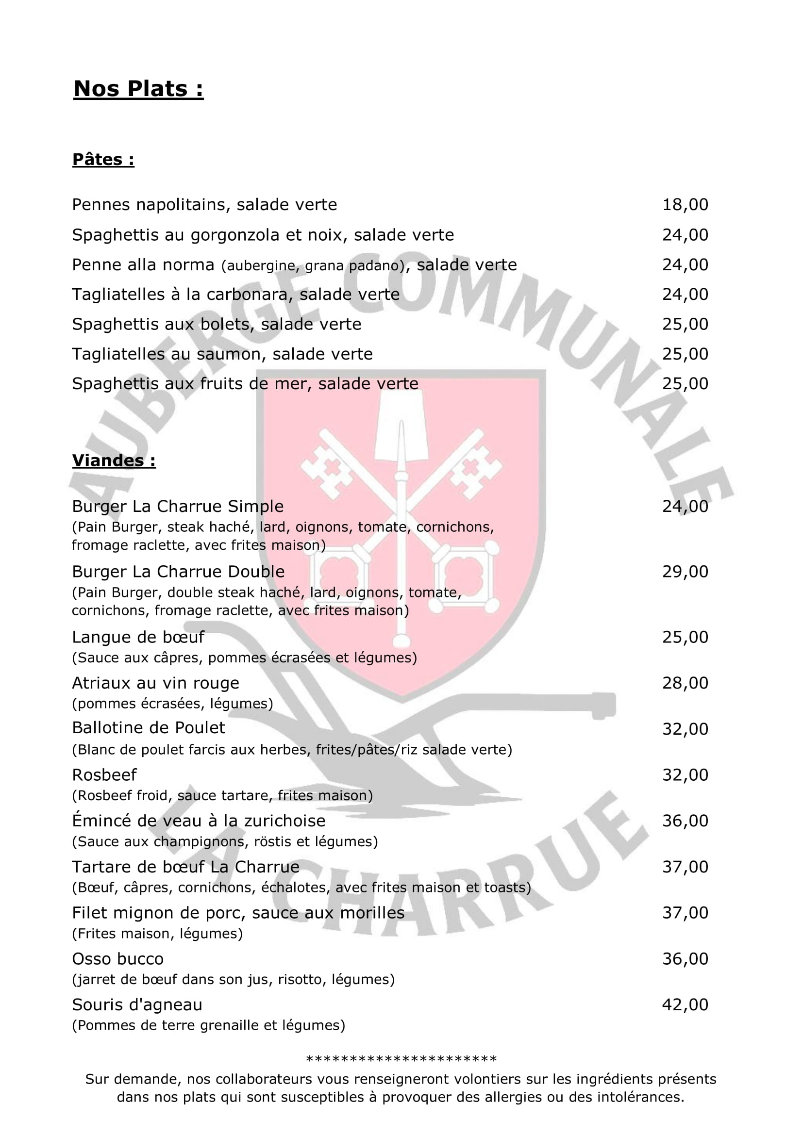 Notre menu est élaboré avec soin par nos cuisiniers pour vous proposer